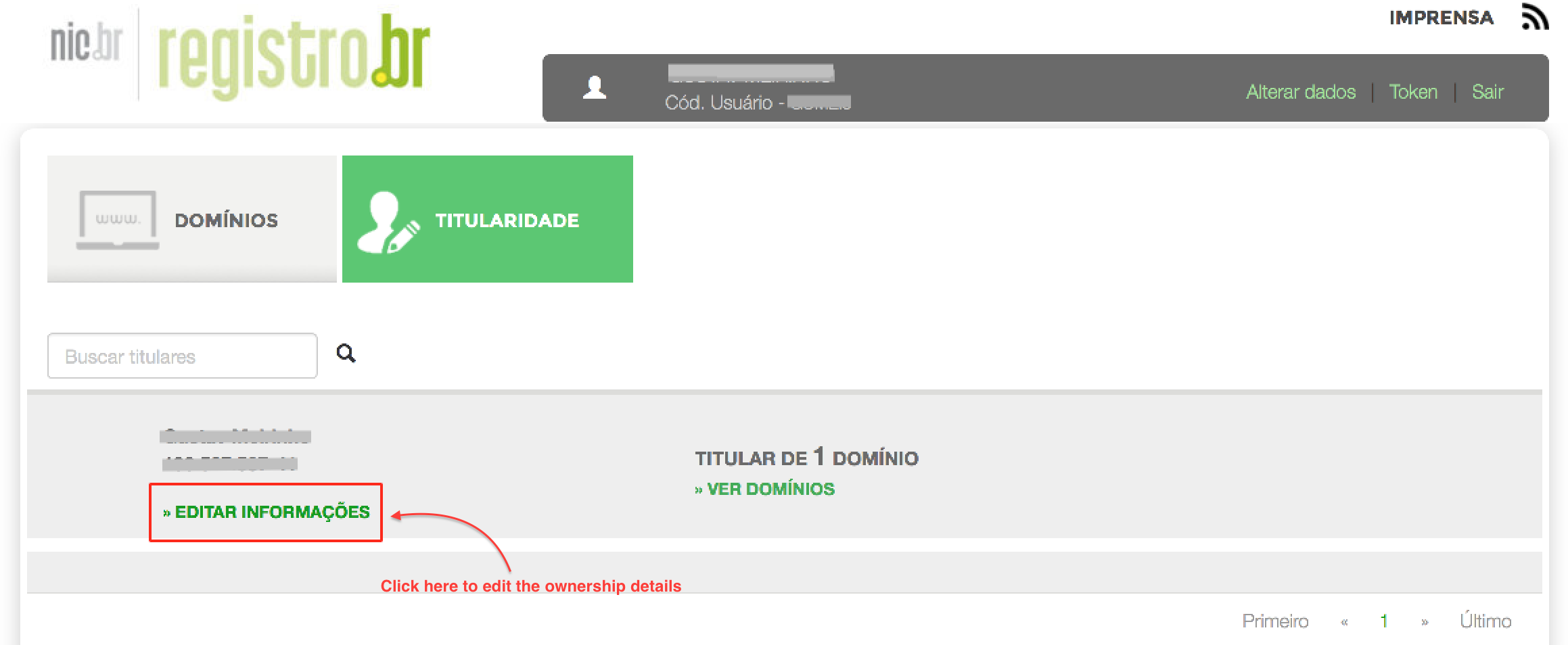 3. In the details view, click on EDITAR INFORMAÇÕES to edit the owner contact.