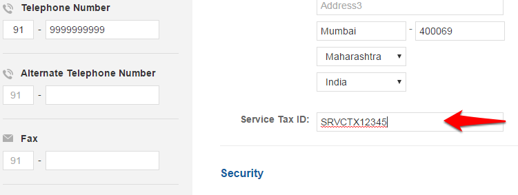You can also add your Service Tax ID from your Control Panel by clicking the